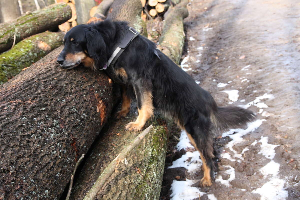 - Gehen Sie mit Ihren Verstecken in die dritte Dimension, so dass Ihr Hund sich recken und strecken muss: Hängen Sie Futter in die Zweige eines Strauches, drücken Sie weiche Futterbröckchen über Hundenasenhöhe in die Rinde eines Baumes, legen Sie Leckereien in Astgabeln oder verstecken Sie Futter in den Zwischenräumen an den Kopfenden eines Holzstapels (Holzstapel selbst sind zum Klettern natürlich tabu!).