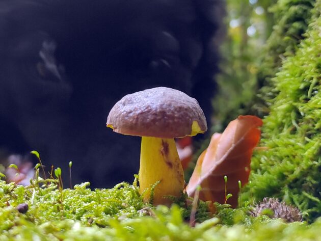 Unser Spleen: Schöne Pilze scharf in Szene setzen – und irgendwo im Hintergrund, im Tiefen-Unschärfebereich, ist der Hund zu sehen. Als Ganzes oder nur die Nase oder nur die Pfoten – egal.